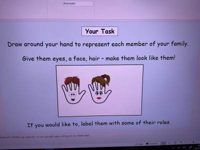 Our focus religion in RE this half term is Hinduism. In today?s lesson we learnt about how much they value their families and how they consider each family to have their own role. We drew around our own hands to represent our families.