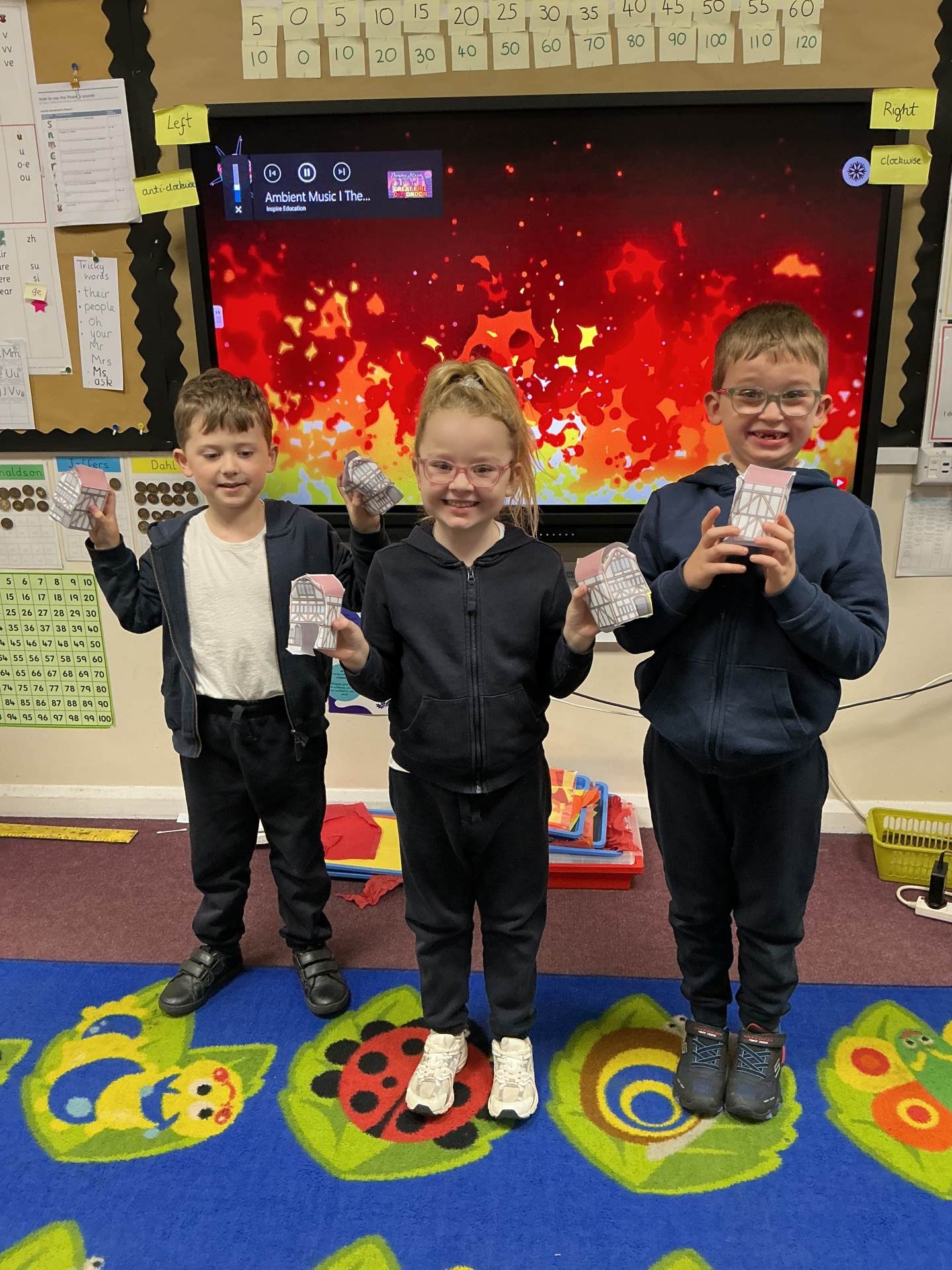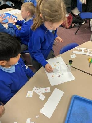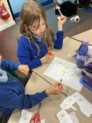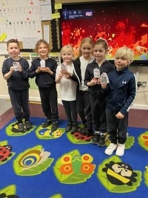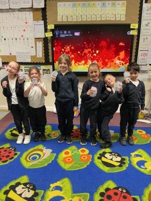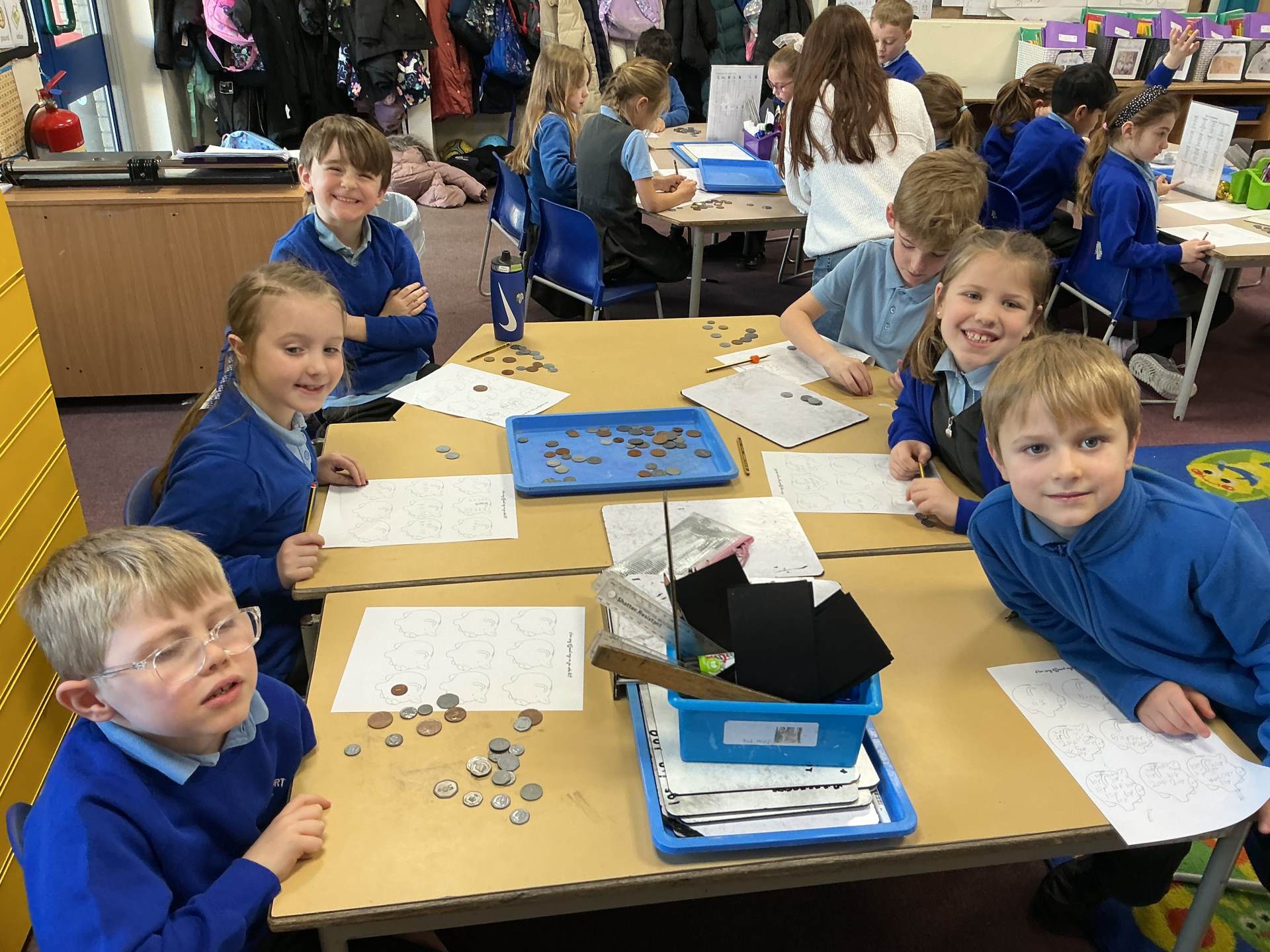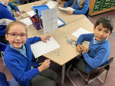 In Maths, we have been learning about money. We practised making ?1 in lots of different ways using coins.